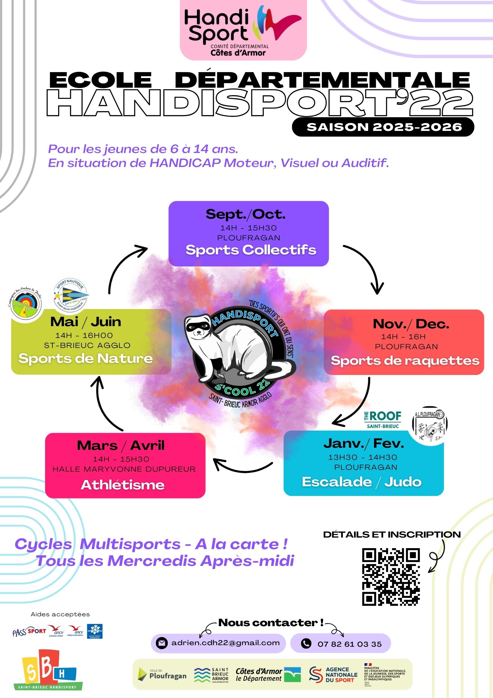 - Anne-Laure LE YAOUANC salariée: 06.81.78.42.17 / agent.developpement@handisport-cotesdarmor.org